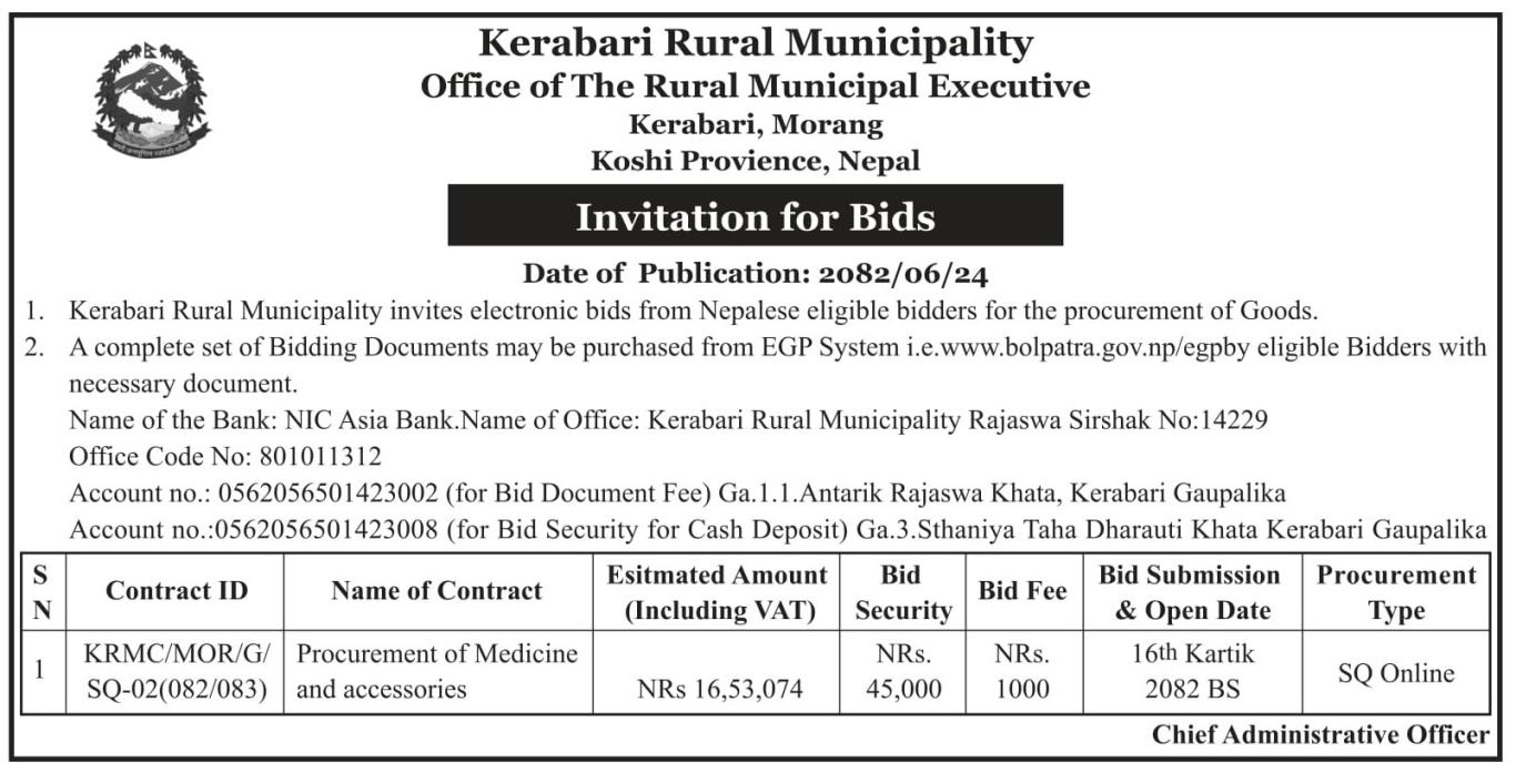 » आौषधि खरिद सम्बन्धि शिलबन्दी दरभाउपत्र आव्हानको सूचना ।
