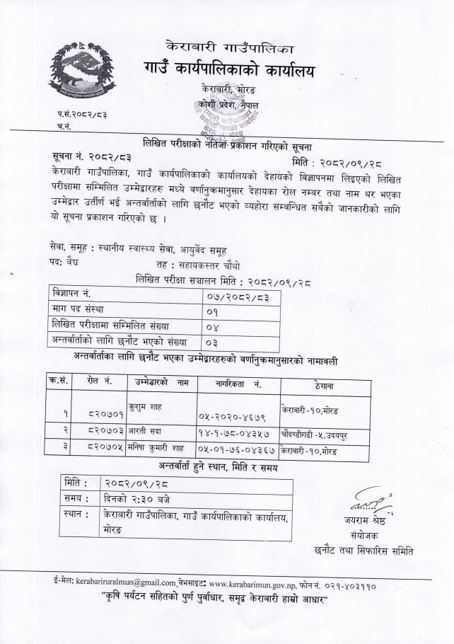 » लिखित परीक्षाको नतिजा प्रकाशन गरिएको सूचना ।