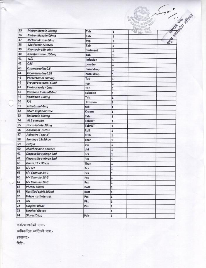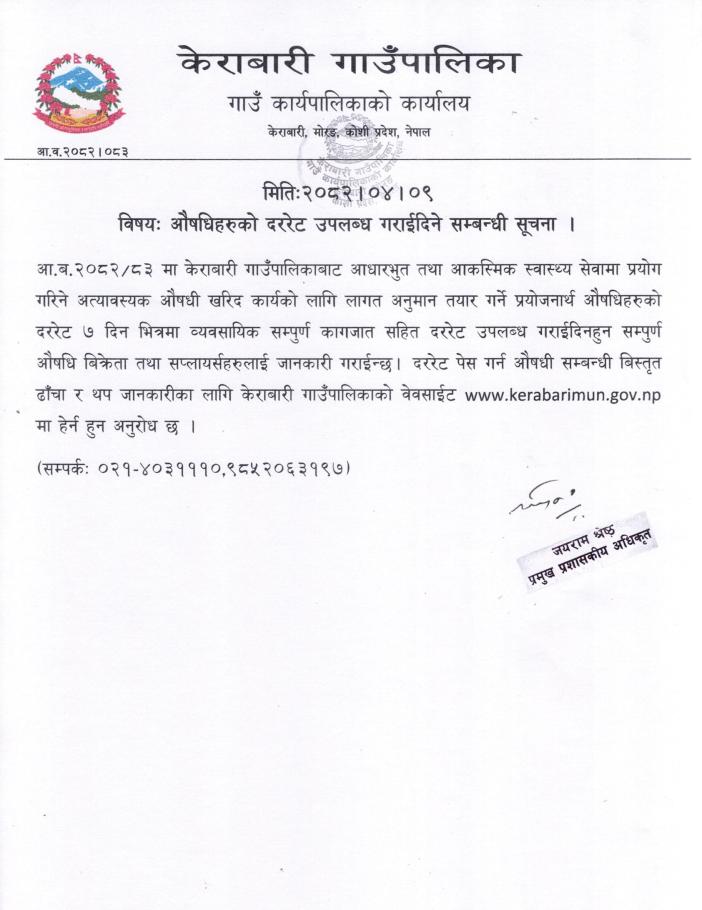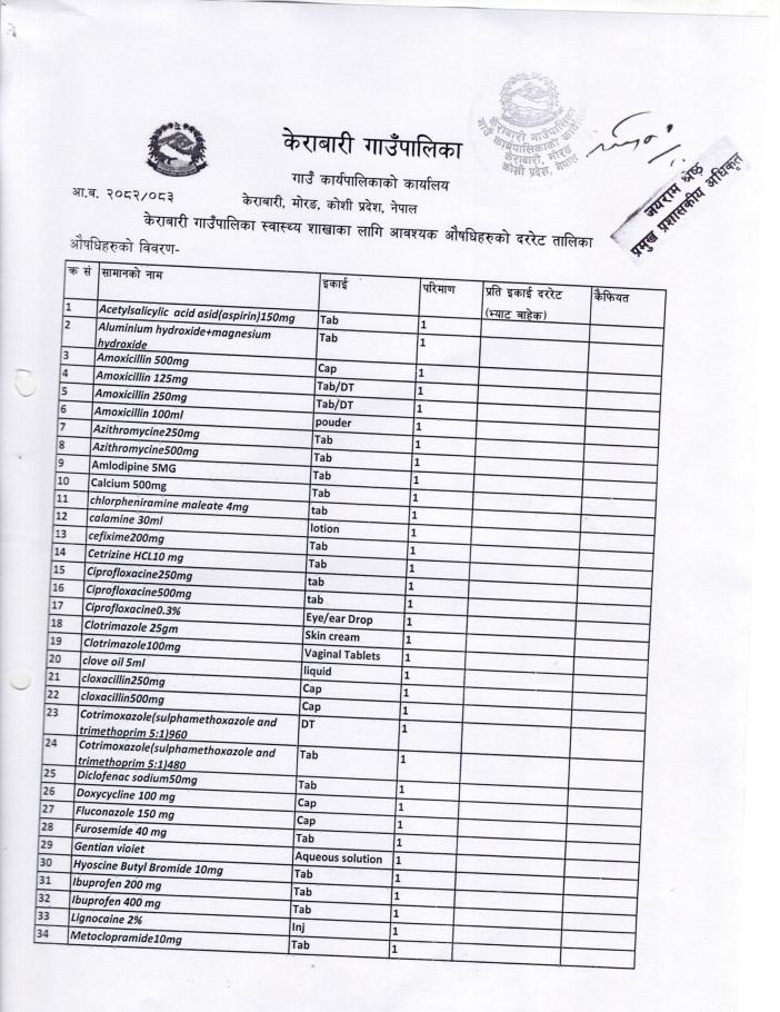 औषधिहरुको दररेट उपलव्ध गराउने सम्बन्धी सूचना ।