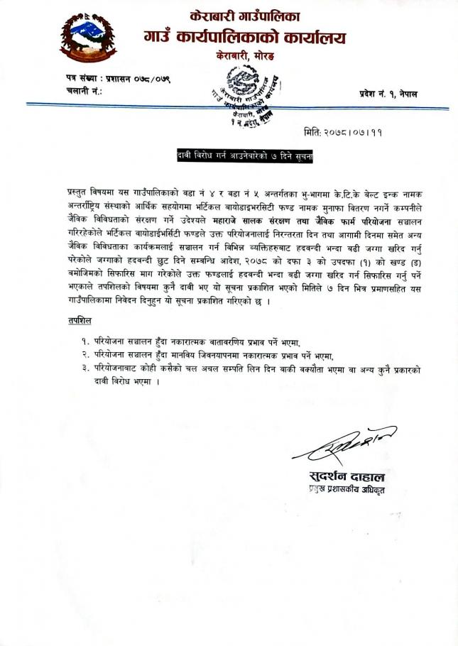 दावि बिरोध गर्न आउने बारेको ७ दिने सूचना ।