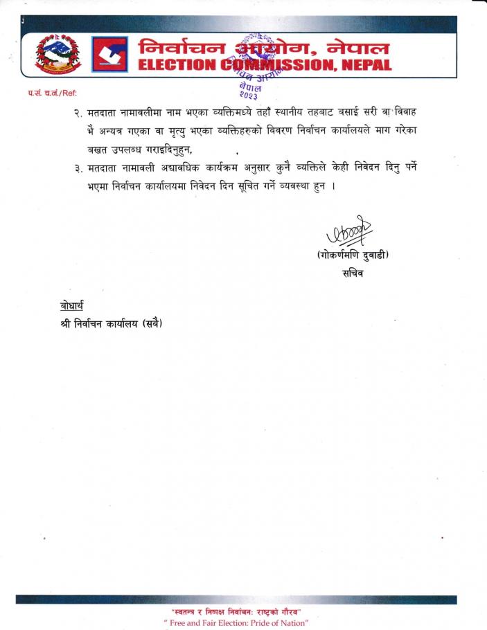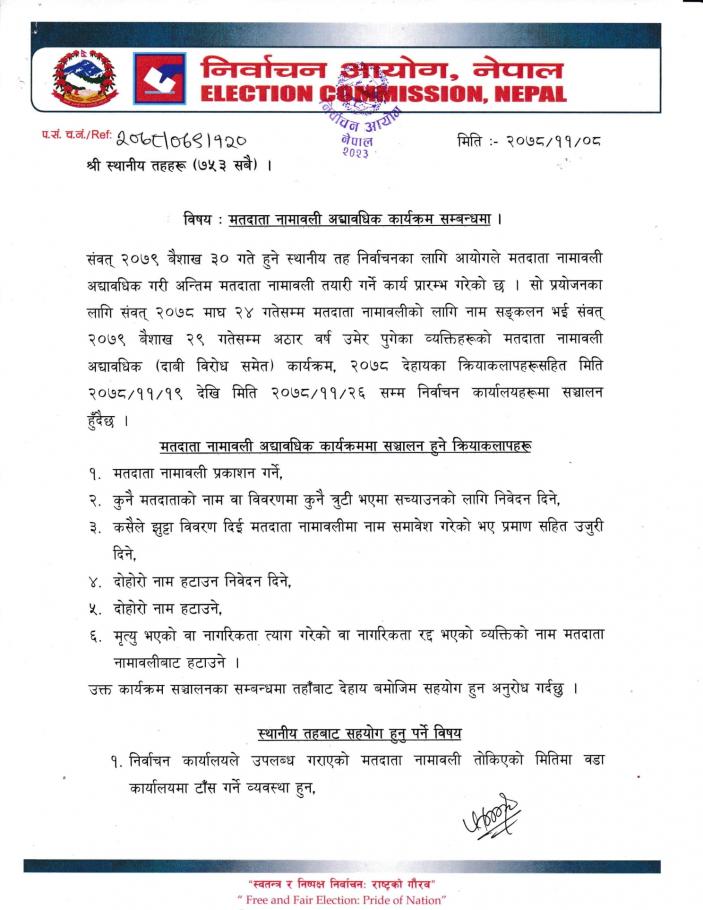 मतदाता नामावली अध्यावधिक कार्यक्रम संचालने हुने सम्बन्धि निर्वाचन आयोगको अत्यन्त जरुरी सूचना ।