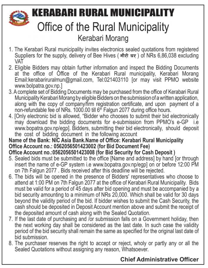 » मौरीको घार खरिद सम्बन्धि दरभाउपत्र आव्हान गरिएको सूचना ।