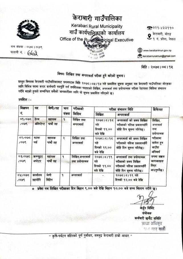 लिखित तथा अन्तरवार्ता परीक्षा हुने बारेको सूचना ।