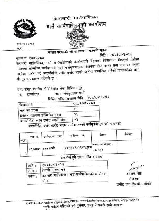 » लिखित परीक्षाको नतिजा प्रकाशन गरिएको सूचना ।