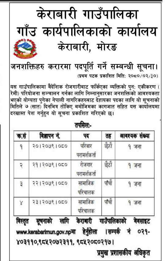 विभिन्न पदमा दरखास्त दिने सम्बन्धी ७ दिने सूचना ।