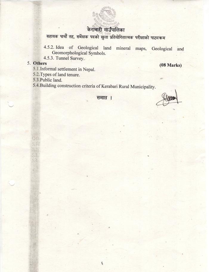 सहायक पाँचौ तह, सर्भेक्षक पदको खुल्ला प्रतियोगितात्मक परीक्षाको पाठ्यक्रम ।