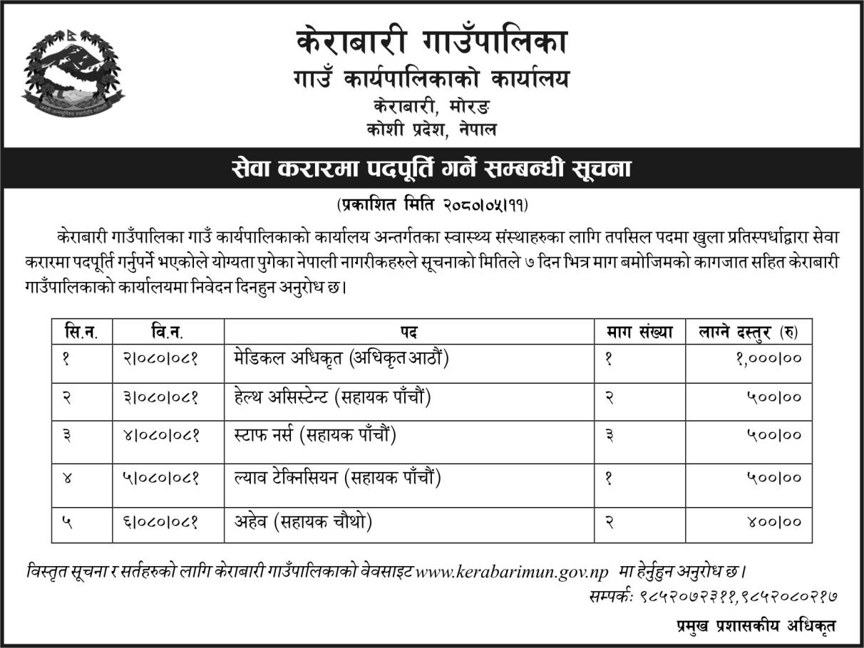 सेवा करारमा विभिन्न पदहरुको पदपुर्ति गर्ने सम्बन्धिको सूचना ।